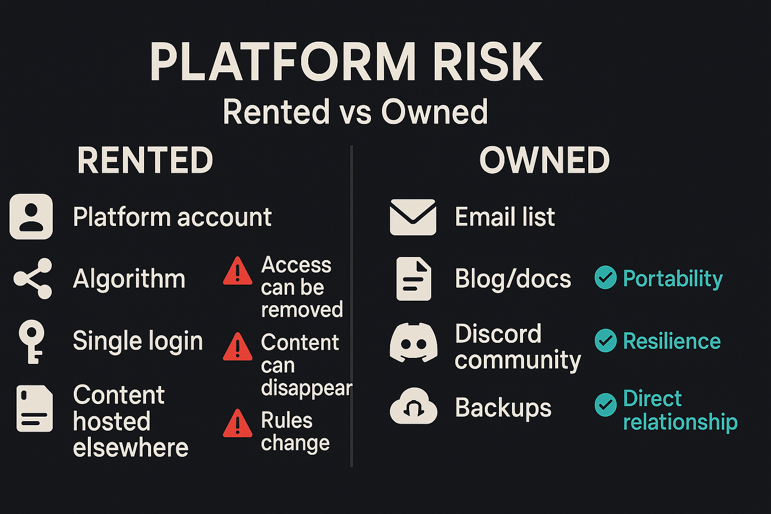 - If you’re building a business in someone else’s community, treat it as platform risk and design a backup plan (owned audience + owned knowledge).
