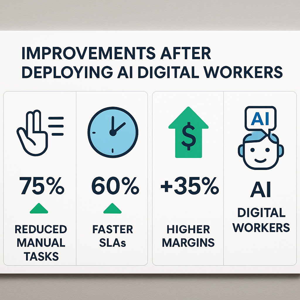 After 30–90 days you want to be able to say: “We now have 3–5 digital workers that collectively reclaimed 30–50% of the repetitive work in these lanes.”